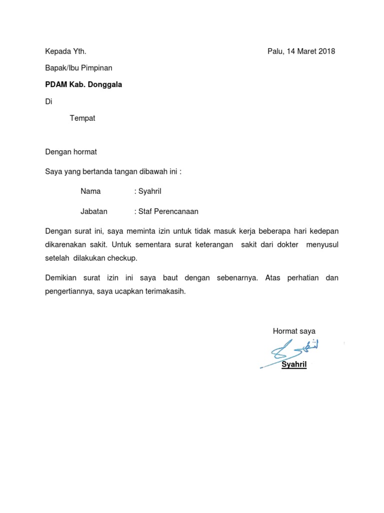 Contoh Surat Izin Sakit Kerja Tanpa Surat Dokter Surat Lamaran Kerja Desain Contoh Surat Q4ykjldpv6